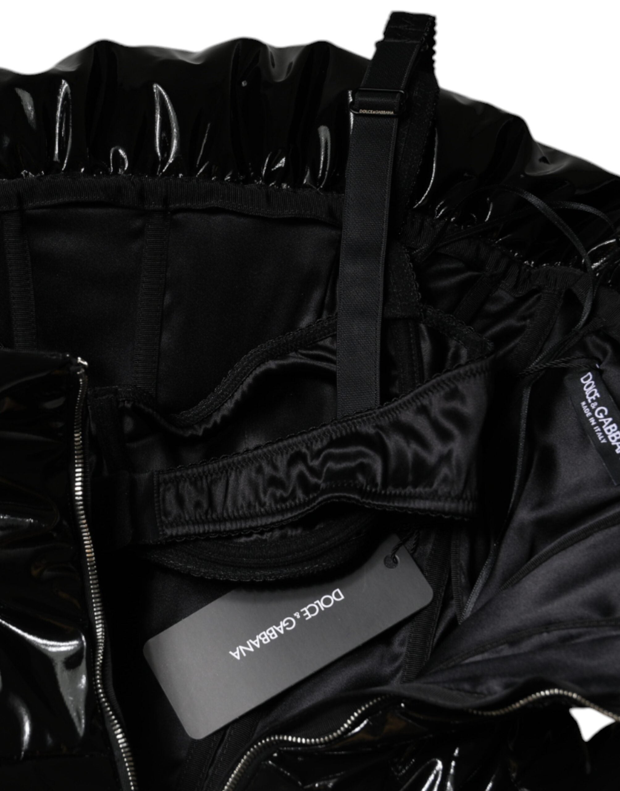 Dolce & Gabbana Black Polyester Ruched Coated Mini Dress