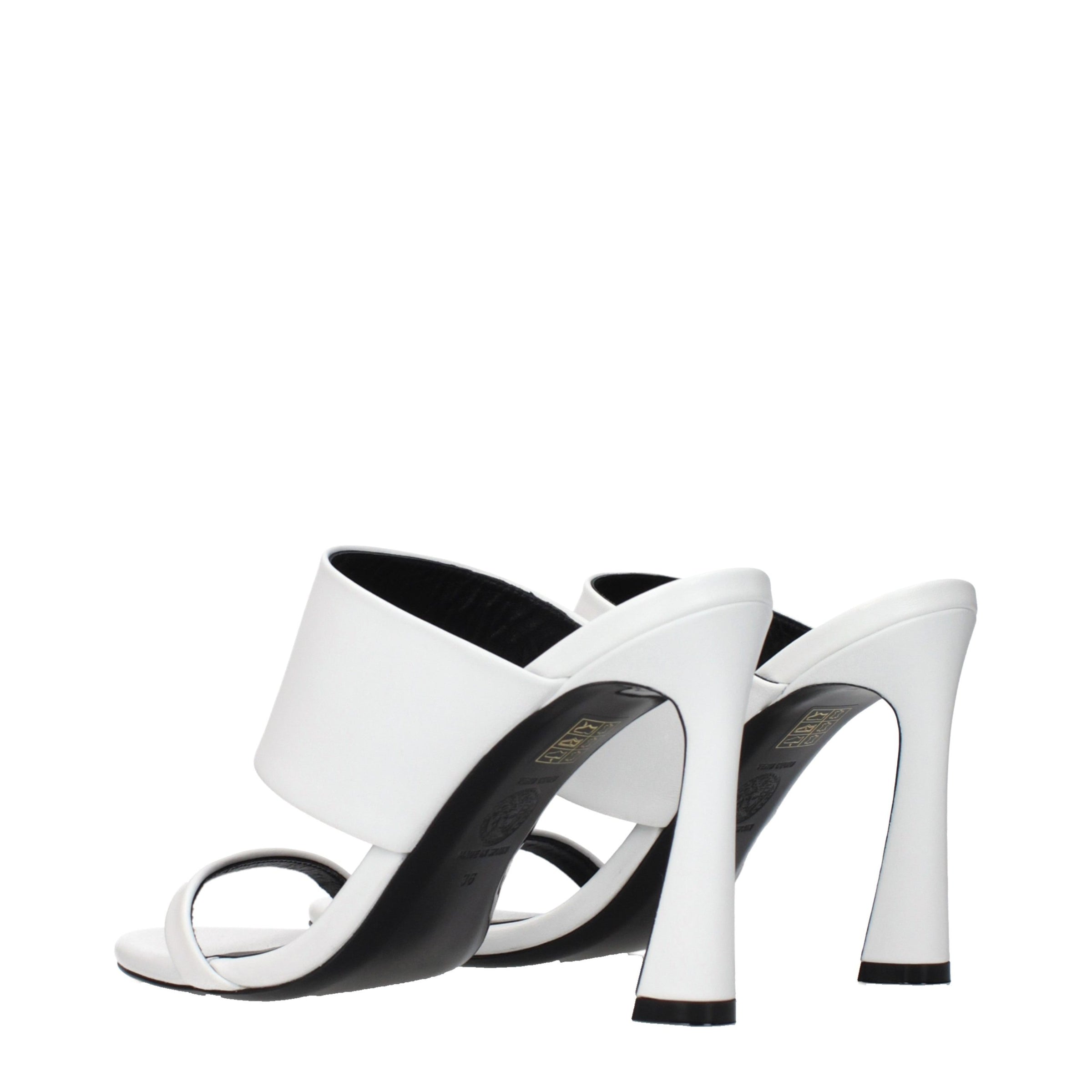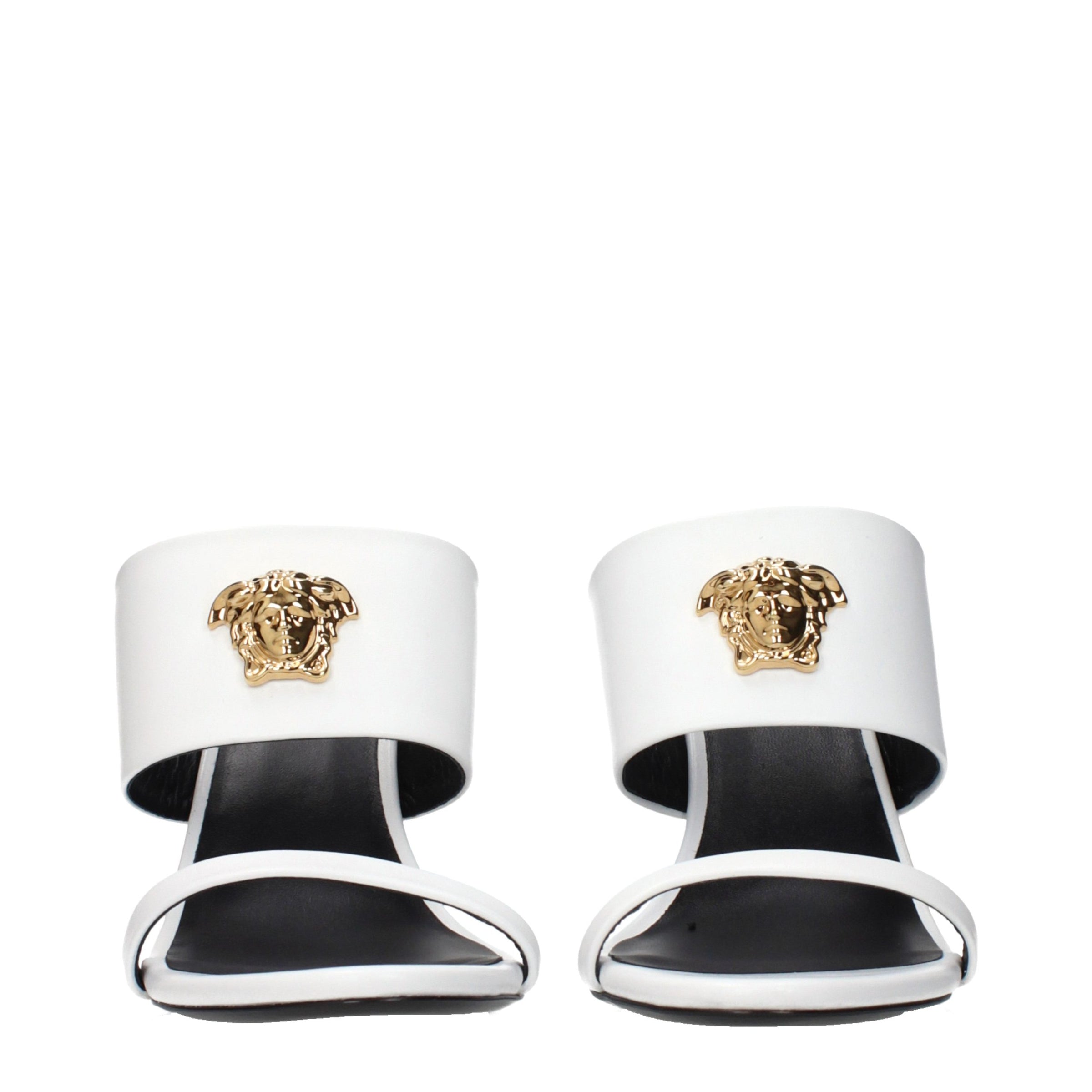 The product with MPN 10094271A020871W01V and code F86643 leather in white is a sandals designed by Versace. It has features like front detail.