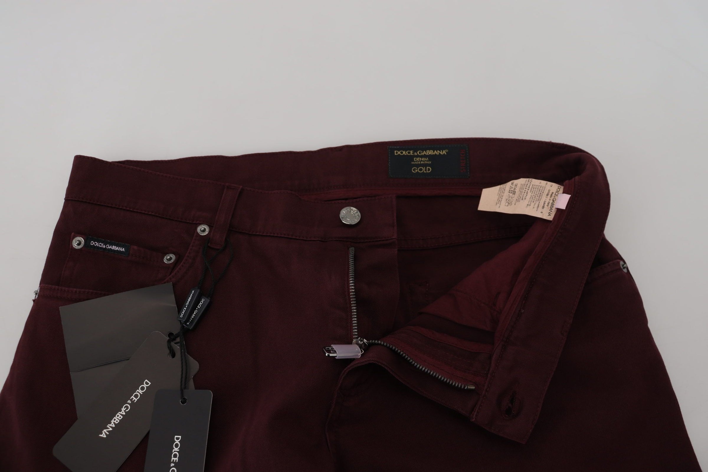 Dolce & Gabbana Bordeaux Cotton Stretch GOLD Denim Jeans