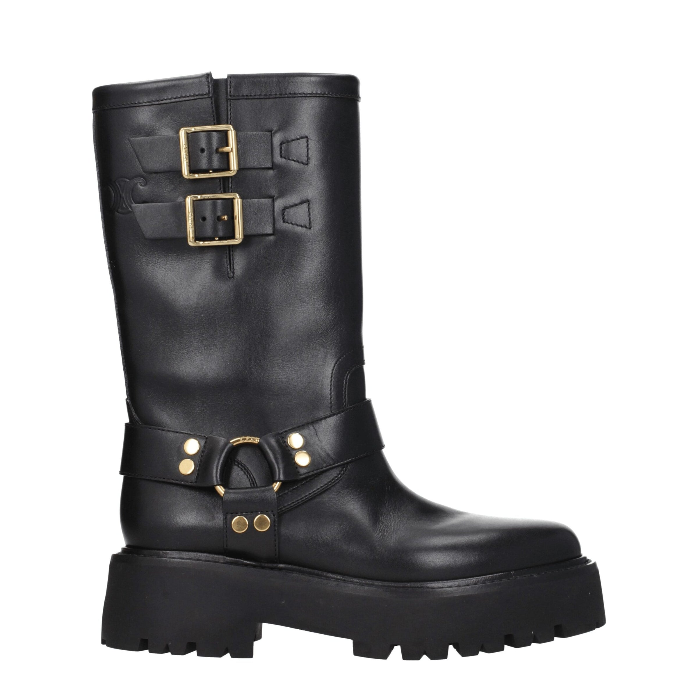 The product with MPN 354573882C38NG and code F76109 leather in gold is a ankle boots designed by Celine. It has features like side detail, vintage effect, side logo.