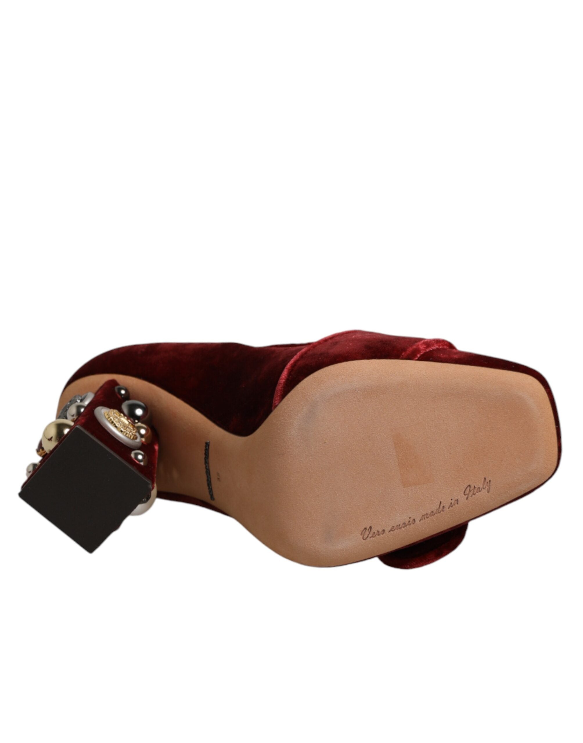 Dolce & Gabbana Red Velvet Embellished Heels Pumps Shoes